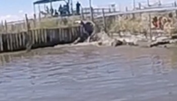 فيديو.. لقطات مرعبة لشاب يتصارع مع تمساح كاد يفقد حياته