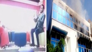 شاهد: لحظة اشتعال قناة تلفزيونية عربية على الهواء