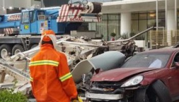 فيديو.. لحظة سقوط رافعة من بناية عالية فى دبى