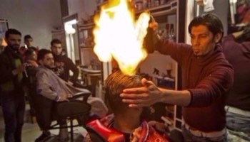 حلاق من غزة يجفف شعر زبائنه بالنار