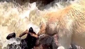 بالفيديو: كلب شجاع ينقذ صديقه من الغرق في نهر