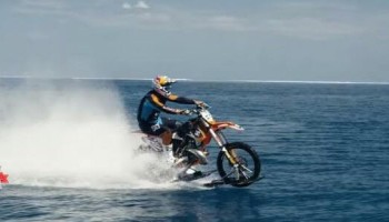 بالفيديو قطع المحيط الهادي بدراجة نارية تمشي فوق الماء