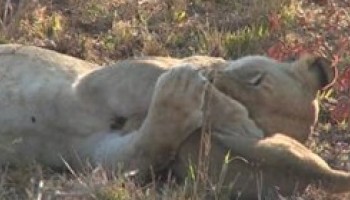 شاهد.. ماذا تفعل أنثى الأسد مع شبلها لتبدأ يومها